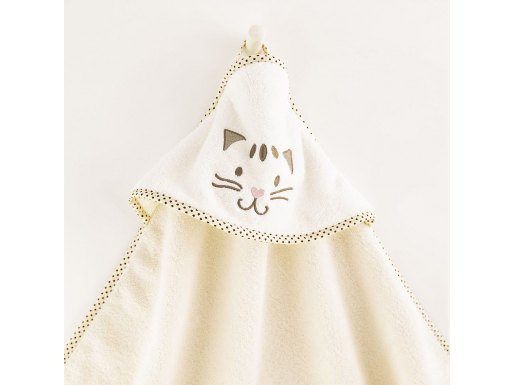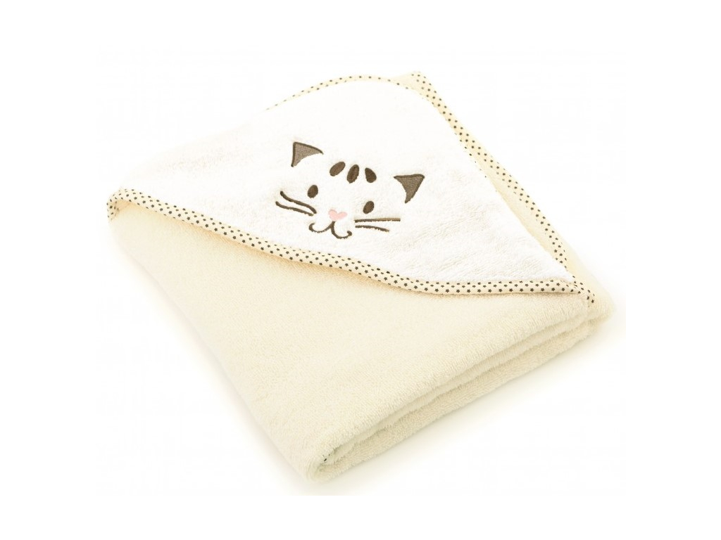 Bavlněná dětská osuška s kapucí Kočka - smetanová