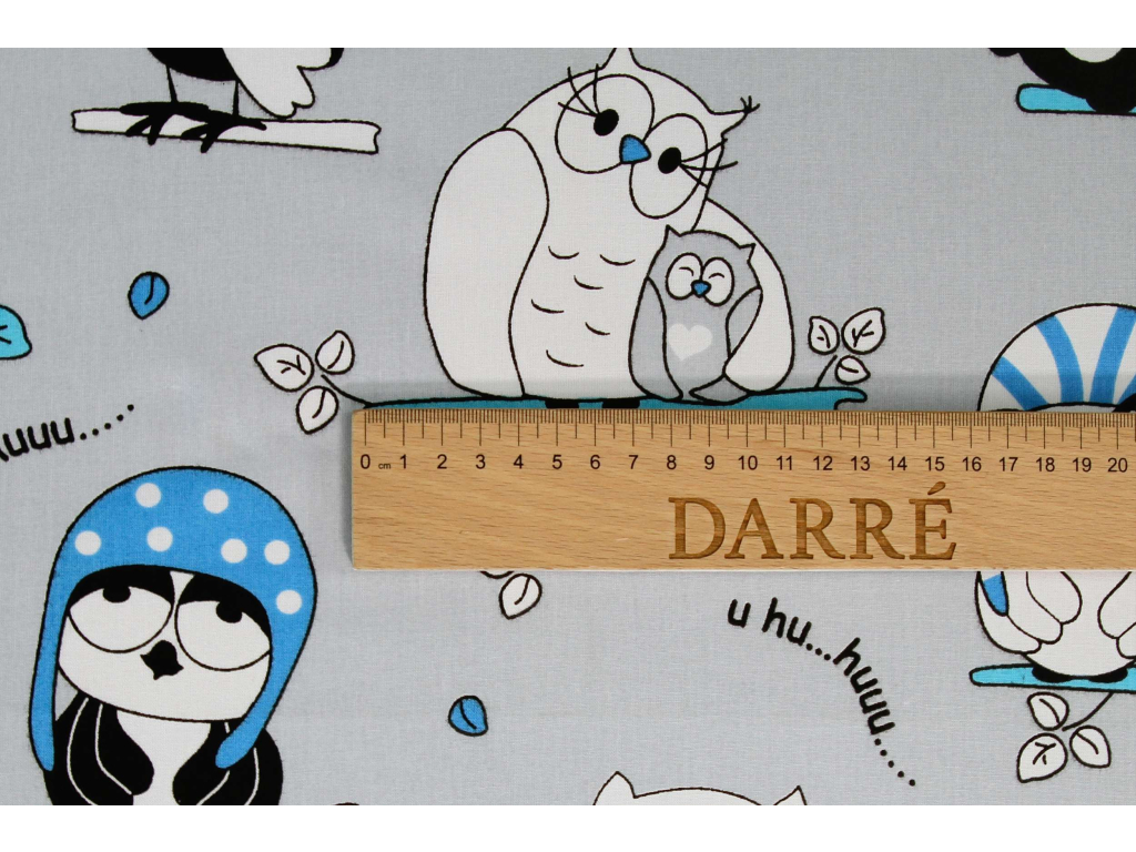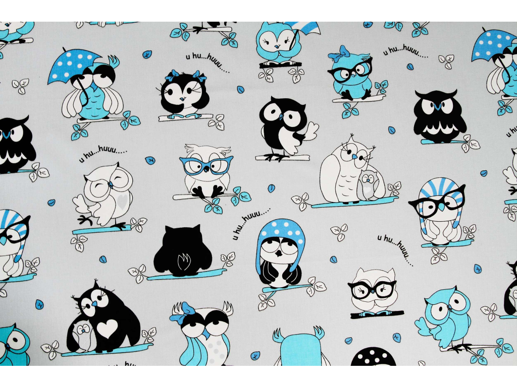 Bavlněná látka Bláznivé sovičky - modrá š.160