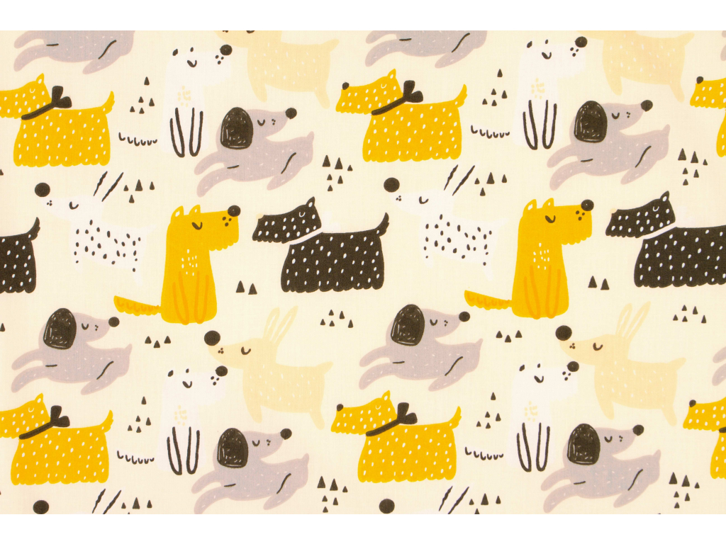 Bavlněná látka Mlsní pejsci smetanová š.160