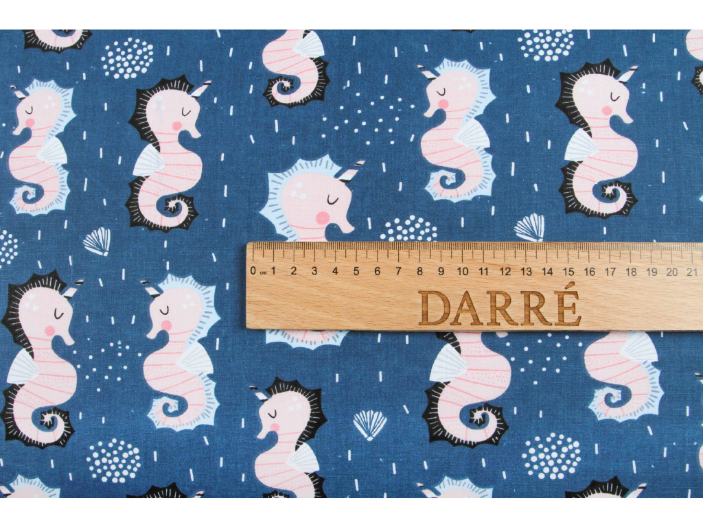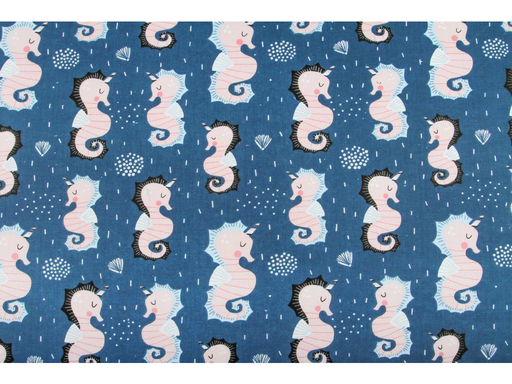 Bavlněná látka Mořský koník - tmavě modrá š.160