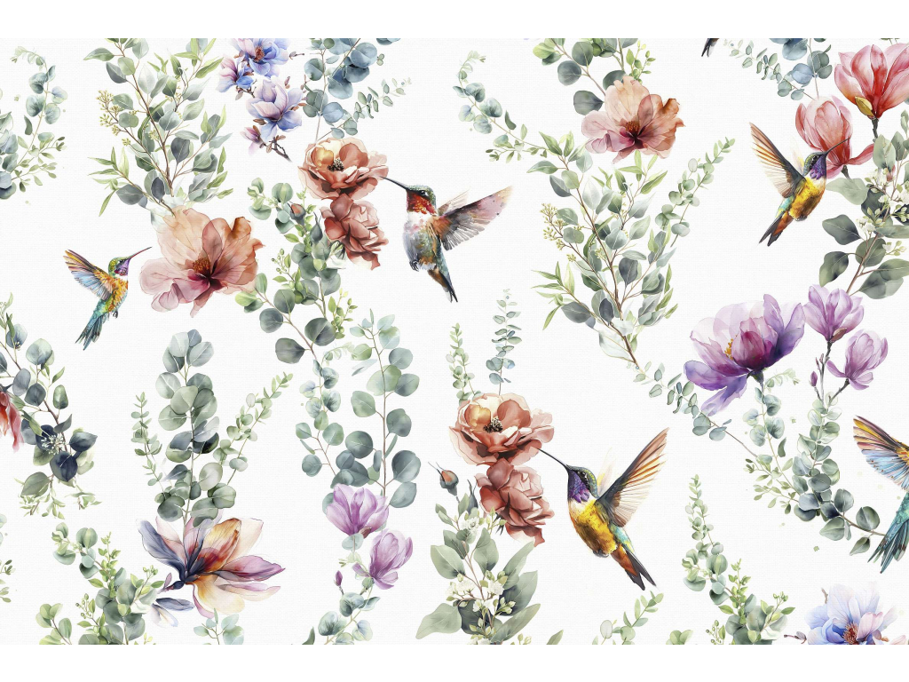 Bavlněná látka s názvem Kolibřík - barevný, která představuje živý a dynamický design, který odráží lehkost a krásu přírody. Na této látce jsou krásně ztvárněny malebné scény s kolibříky v letu, kteří se proplétají mezi pestrobarevnými květy a zelenými listy. Každý detail od peří kolibříků až po odstíny květin je zpracován s uměleckou jemností, což dává tomuto textilu pocit realistického zobrazení.
