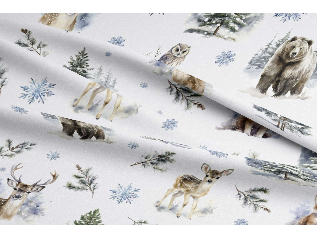 Bavlněná látka PERKÁL - Vánoční roztomilá zvířátka š.147