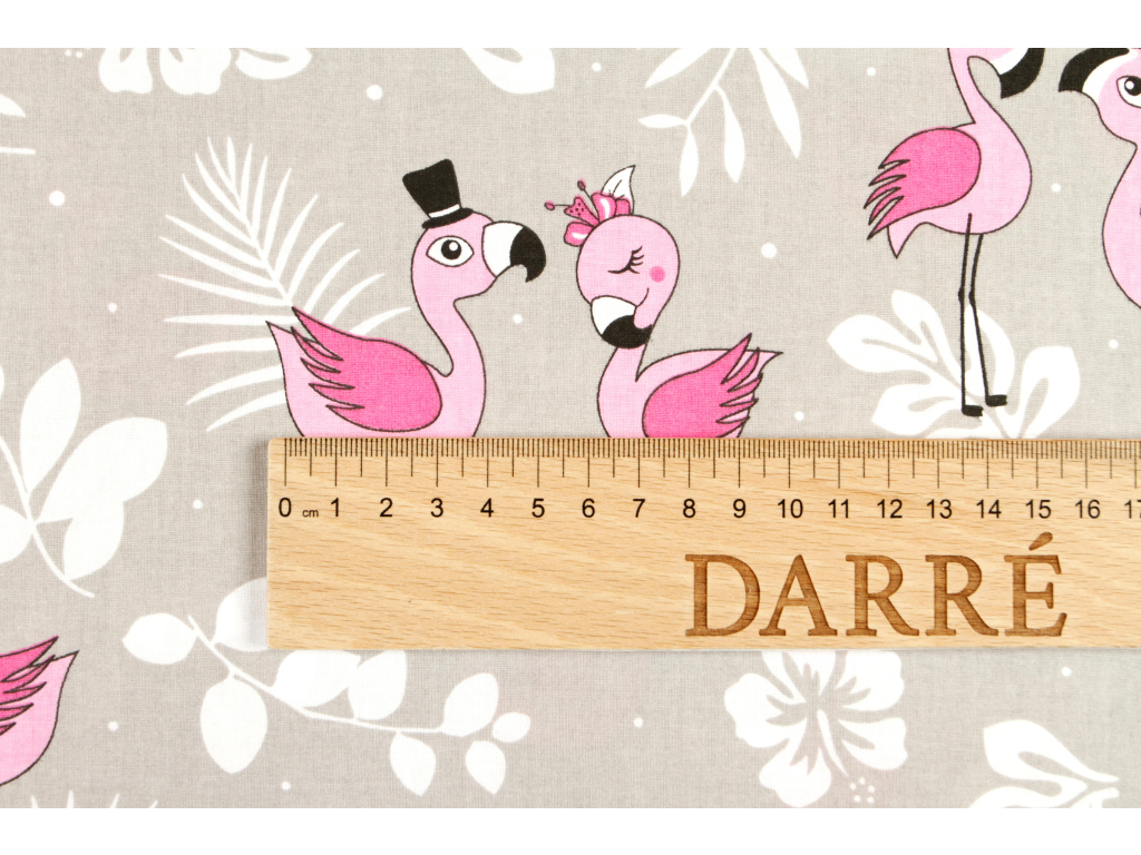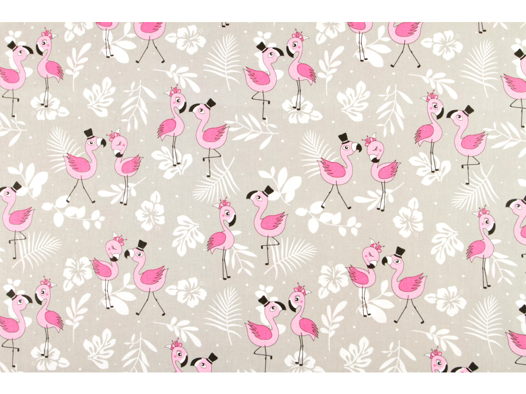 Bavlněná látka Plameňáčci šedá š.160