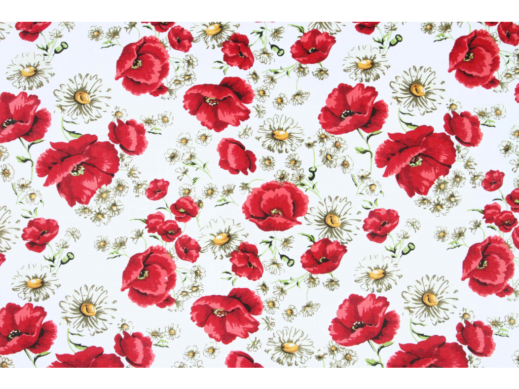 Bavlněná látka Rozkvetlé máky bílá š.160