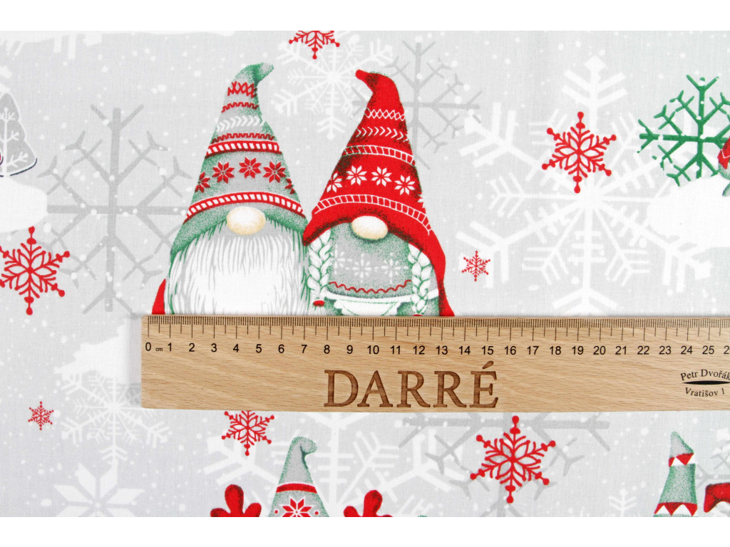 Bavlněná látka Vánoční skřítci červenozelená š.160