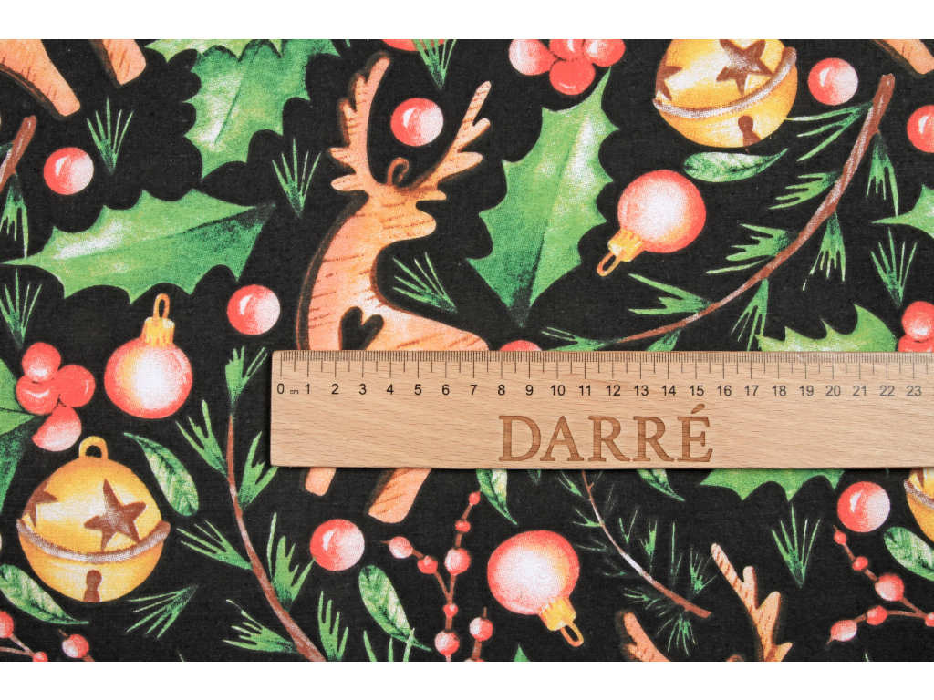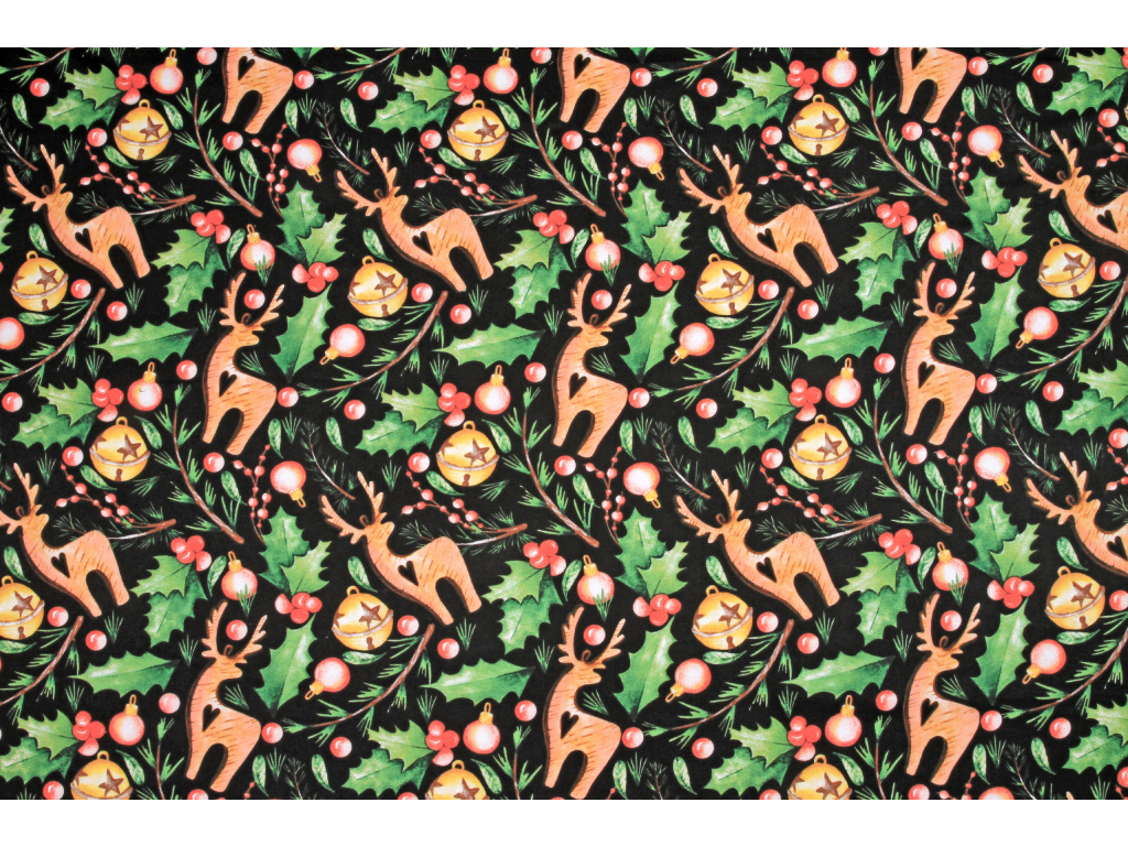 Bavlněná látka Vánoční sobi s rolničkami š.160