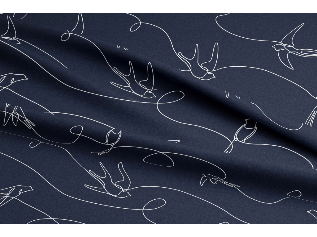 Bavlněná látka Vlaštovky v letu - tmavě modrá š.160
