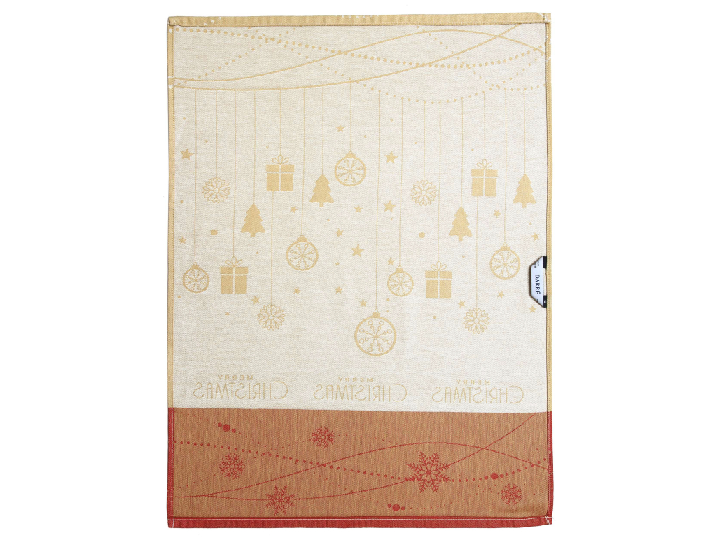 Bavlněná utěrka Vánoční ozdoby - červená - 2. jakost