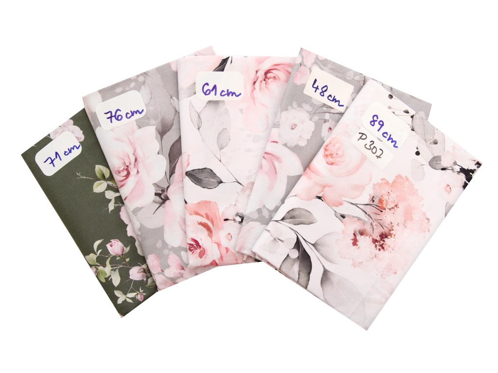 Šířka látky je 160 cm. Jemnost příze 20 TEX. Vzor je na látku tištěn precizním digitálním tiskem, který je velmi kvalitní a stálobarevný.