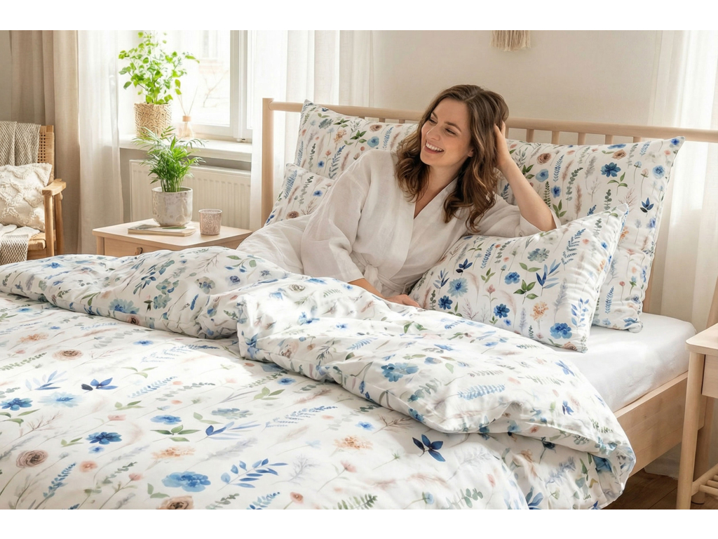 Bavlněné povlečení Boho zahrada - modré - 2.jakost