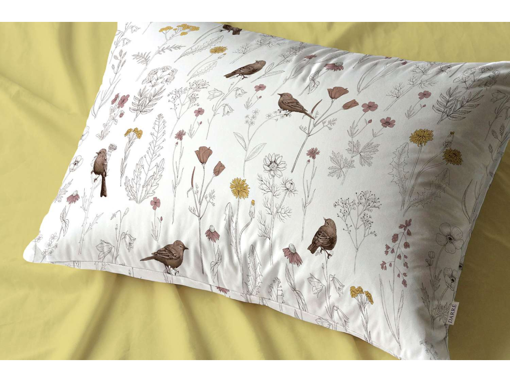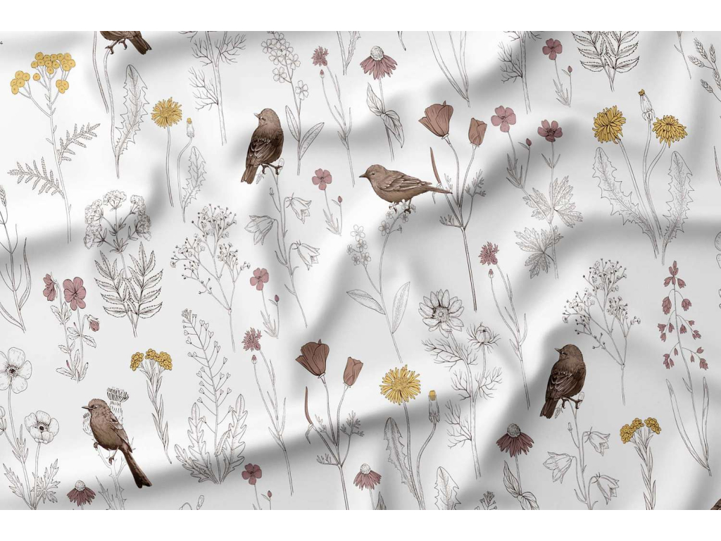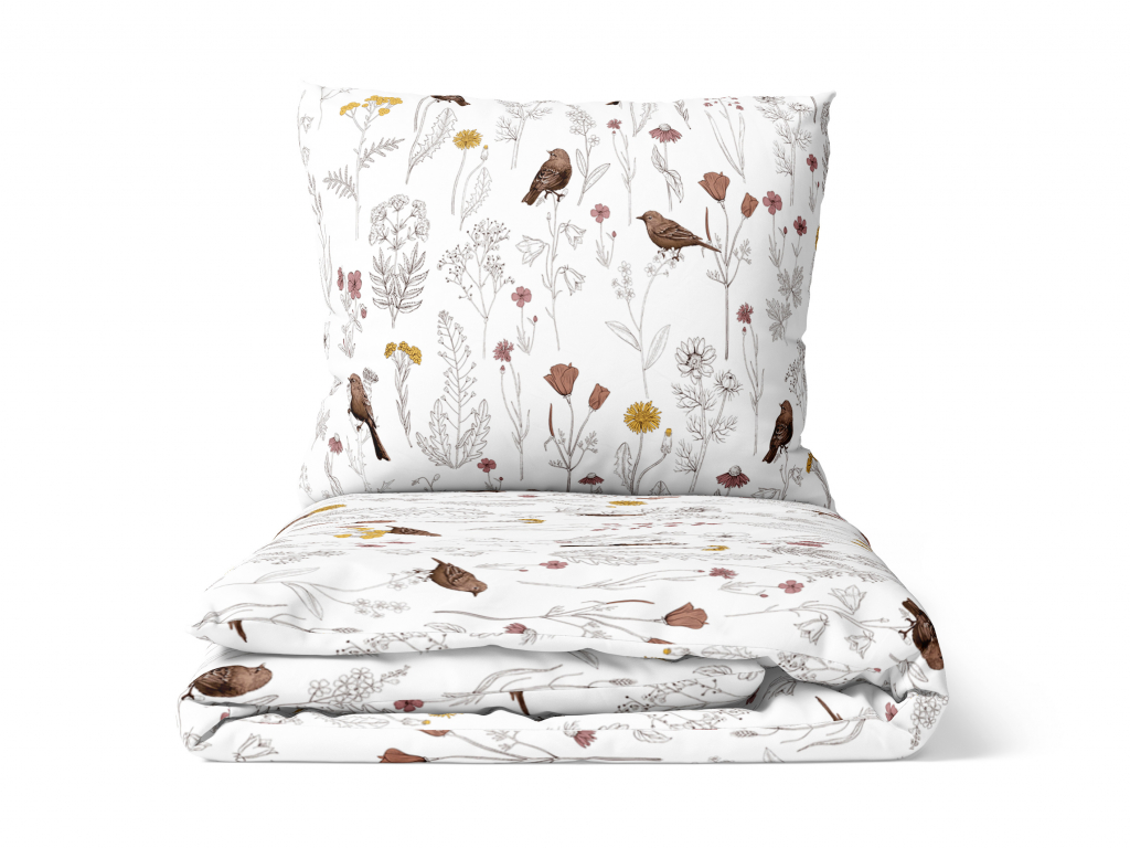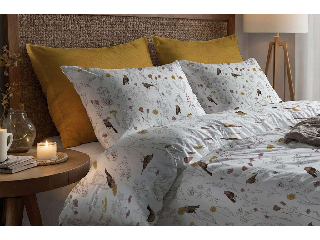 Bavlněné povlečení Ptáčci v kvítí - bílé