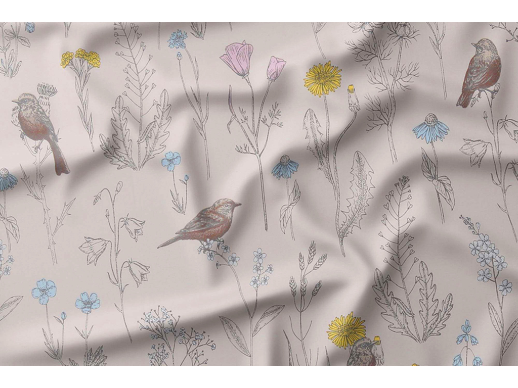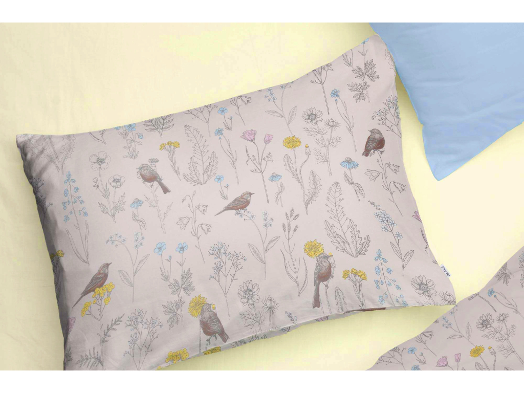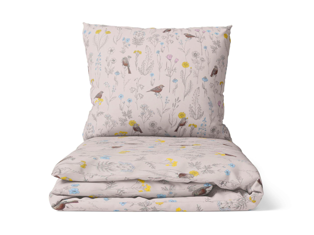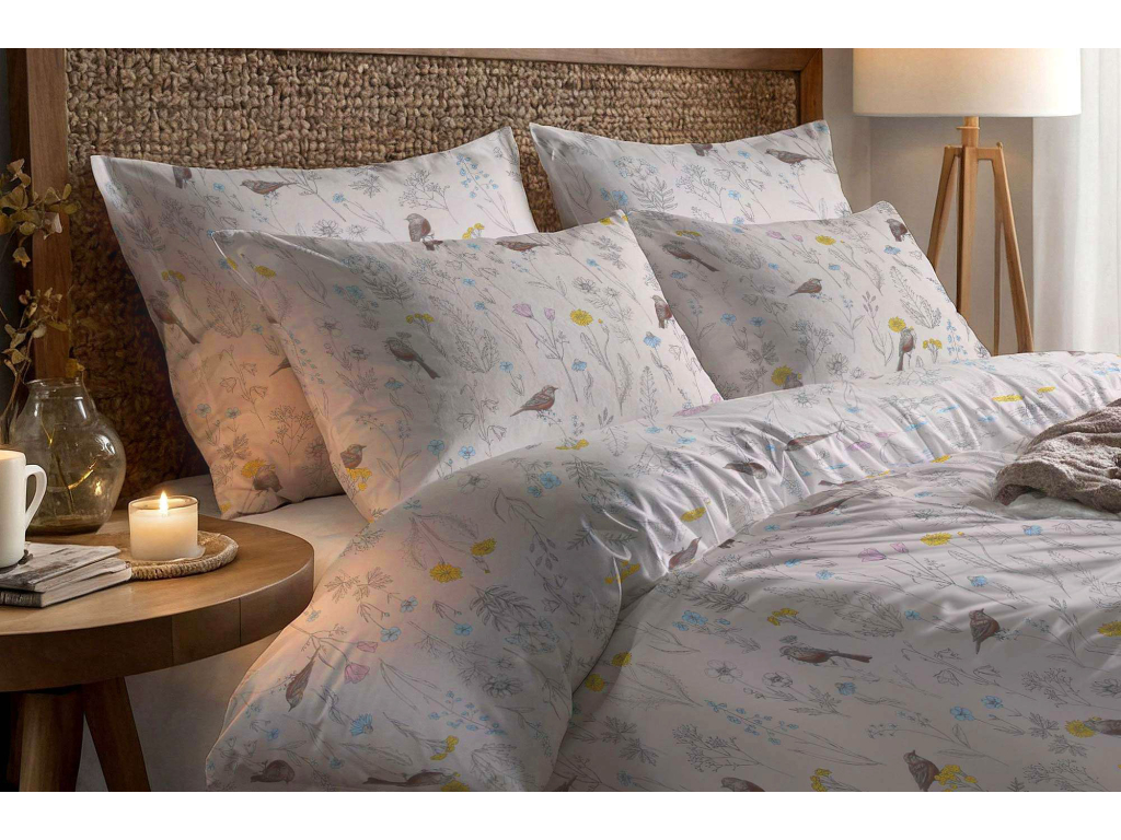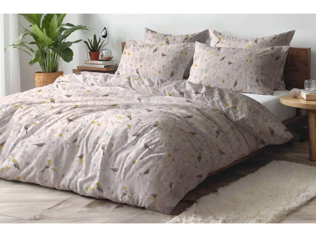Bavlněné povlečení Ptáčci v kvítí - smetanové - 2.jakost