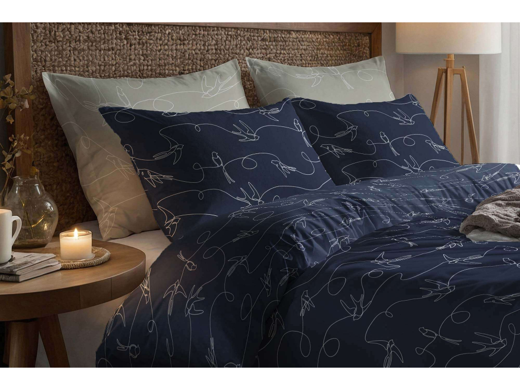 Bavlněné povlečení Vlaštovky v letu - tmavě modré - 2. jakost