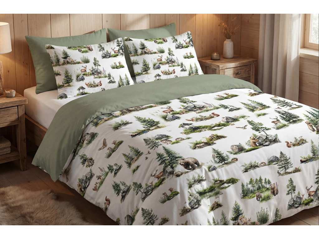 Bavlněné povlečení Zvířátka v divočině lesní zelené - duo
