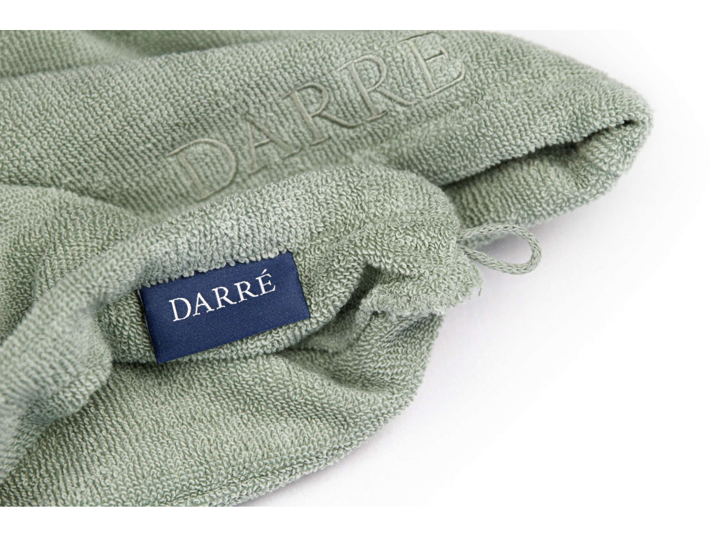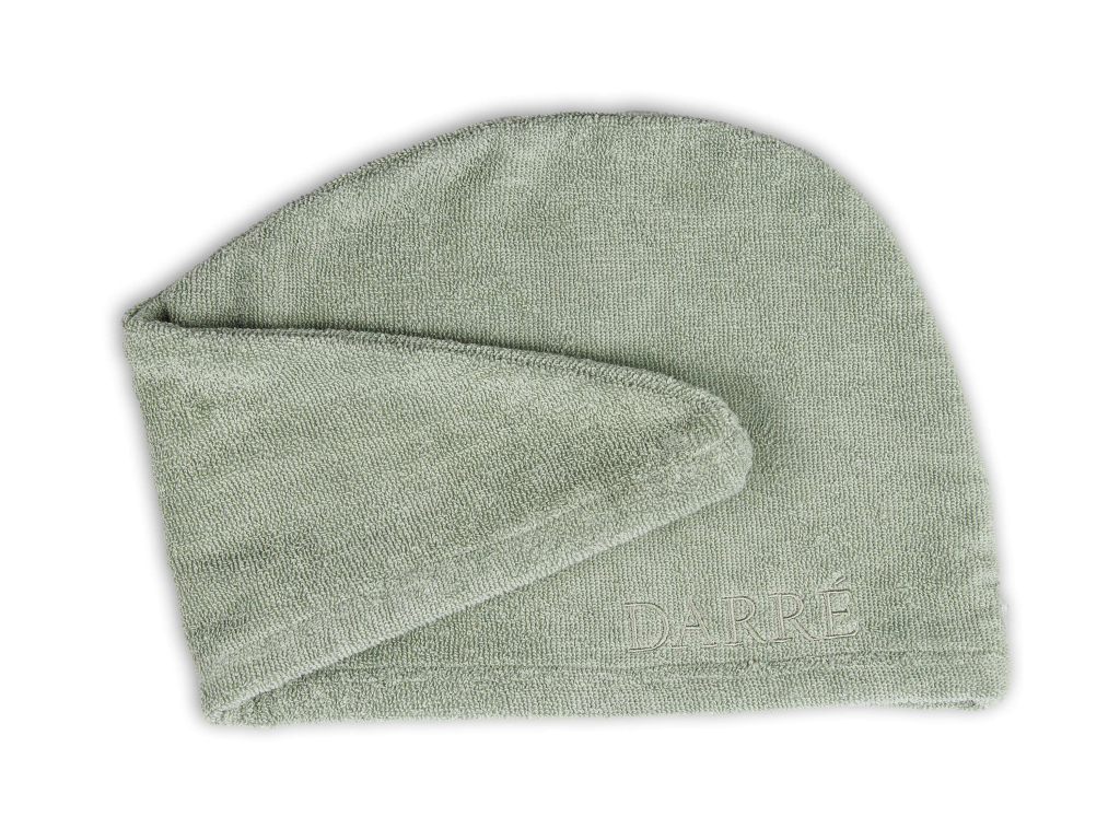 Turban chrání vlasy před vysoušením a poškozením a navíc zachycuje pot, který může stékat po obličeji a krku. Ručník se snadno nasazuje i sundává a praktický knoflík zaručí, že vám ručník nespadne z hlavy. Turban lze navíc použít jako ručník na vysoušení vlasů po sprše. Na turbanu je tón v tónu výšivka DARRÉ.