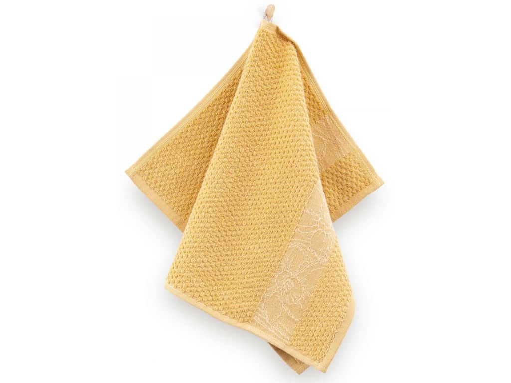 Bavlněný kuchyňský ručník hořčicový Narcisky 30x50
