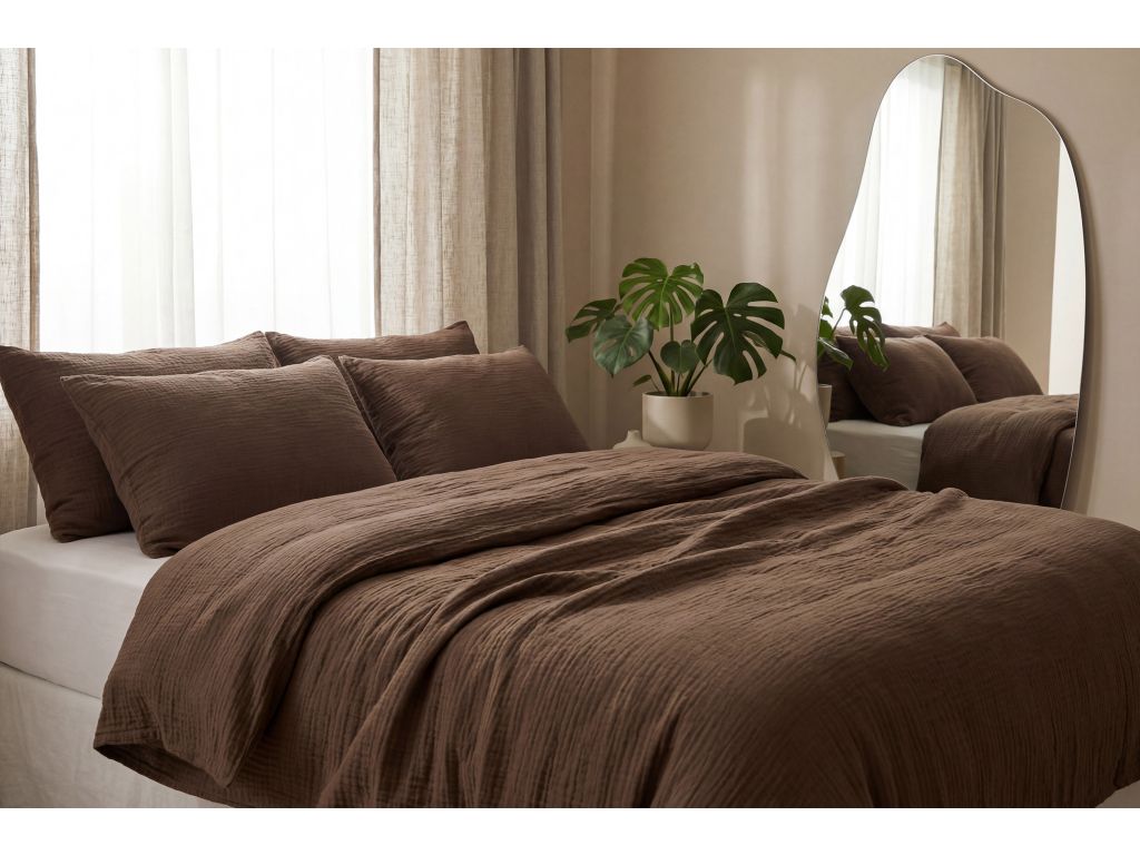 Celoroční mušelínové povlečení Chocolate - GOTS - 2.jakost