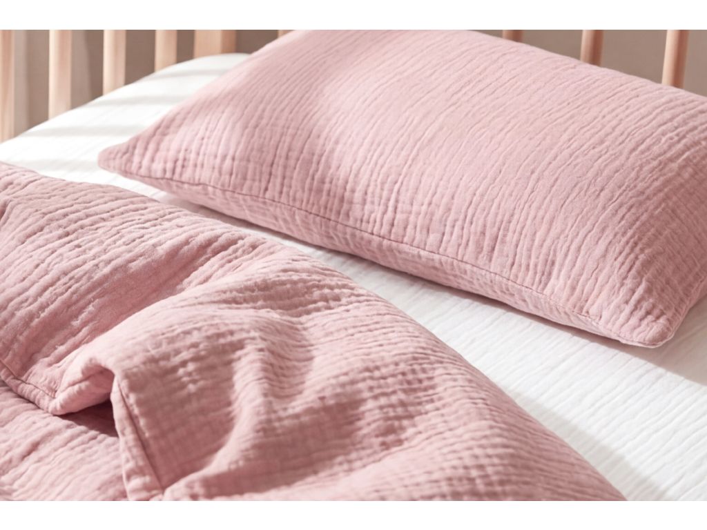 Celoroční mušelínové povlečení do postýlky Soft pink - GOTS