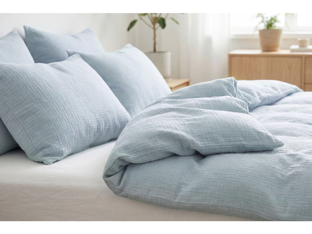 Celoroční mušelínové povlečení Ice Blue - GOTS - 240x200+2x70x90 - 2.jakost