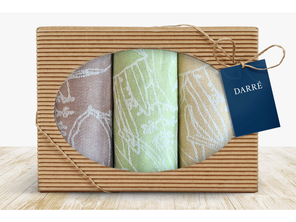 V kazetě jsou 3 ks utěrek Narcisky - světle hořčicová, světle hěndá, zelená