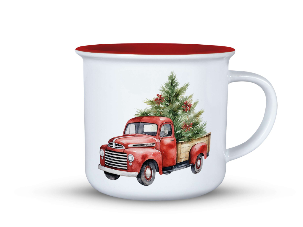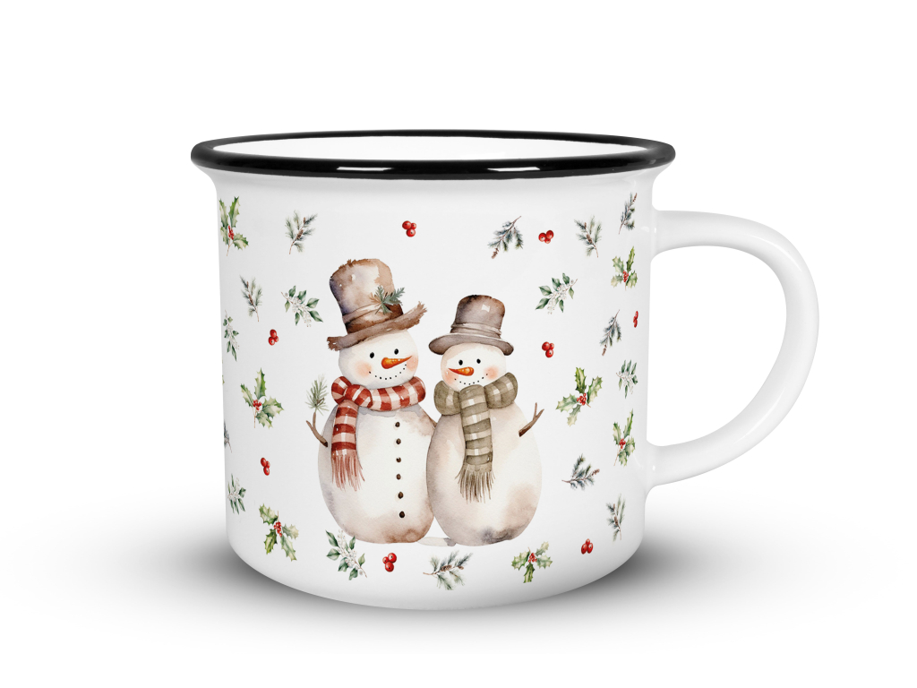 2 keramické hrnečky s vánoční tématikou – jemné ilustrace inspirované tradičními Vánocemi