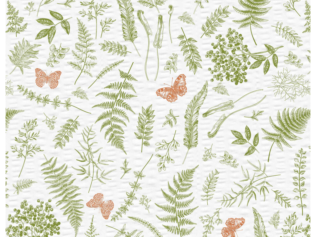 Krepové povlečení V kapradinách s pruhem - bílozelená - 2.jakost