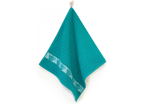 Bavlněný kuchyňský ručník tyrkysový Jeřabina 30x50