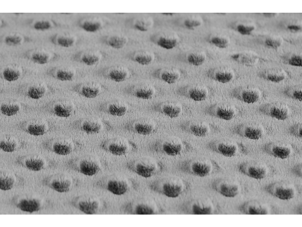 Minky je úžasně jemný, měkoučký materiál vyzývající k pomuchlání. V látce jsou prolisy, které na lícové straně vytvářejí plastické puntíky.