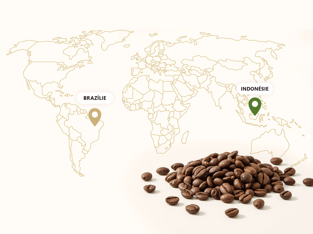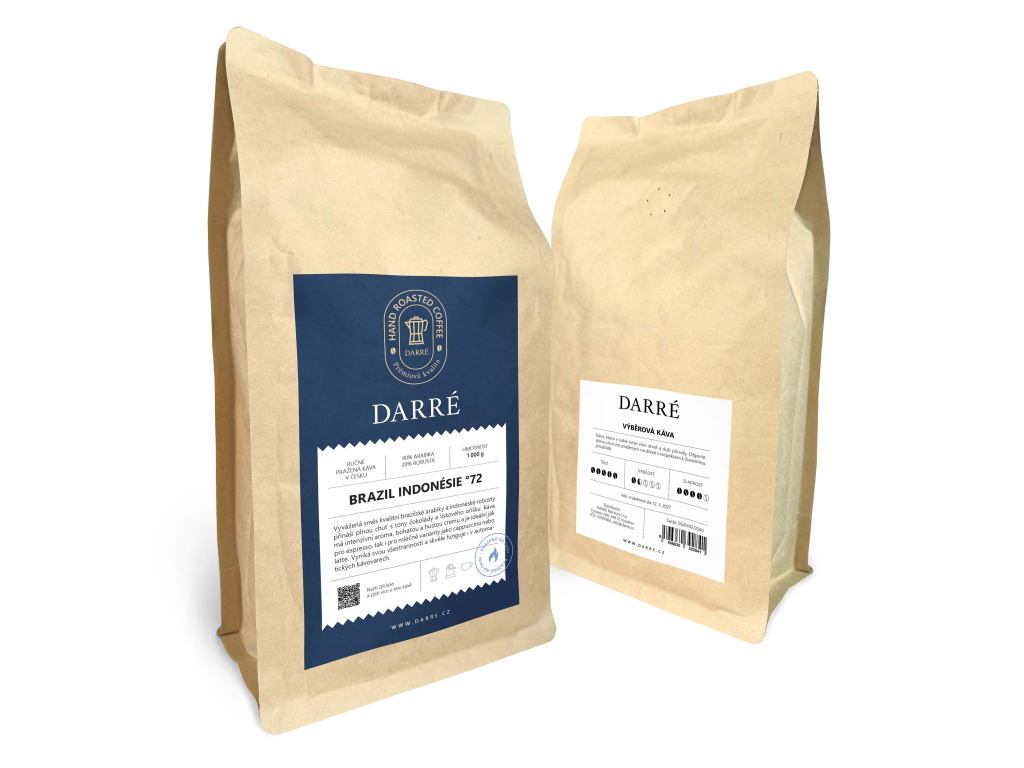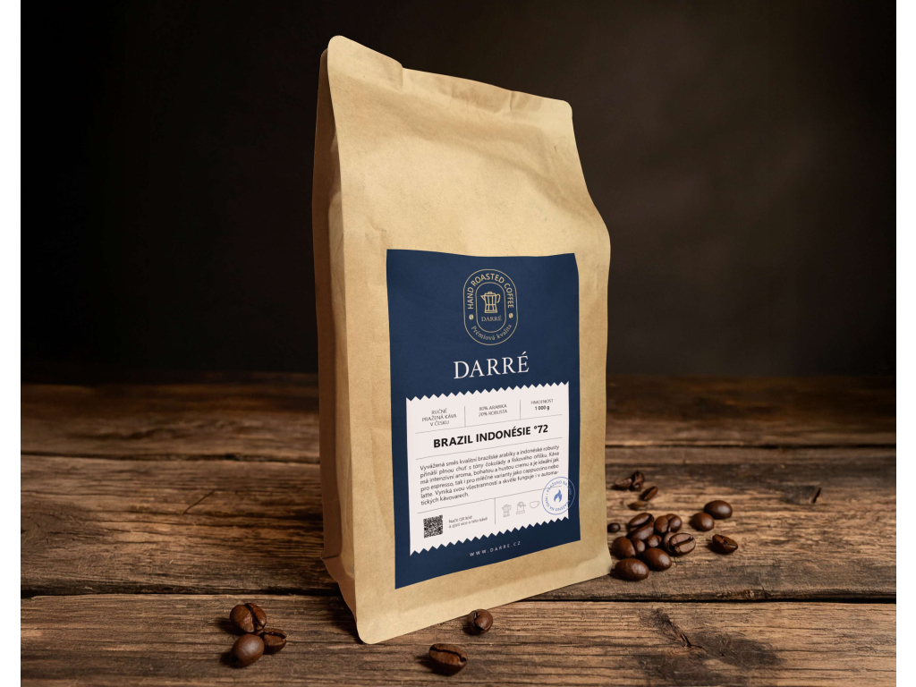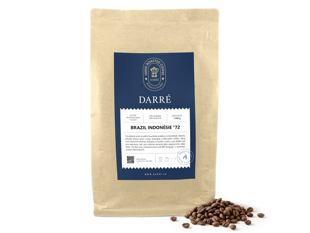 Prémiová zrnková káva Brazil Indonésie °72 - 80% Arabika, 20% Robusta
