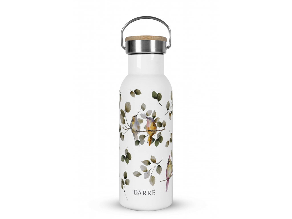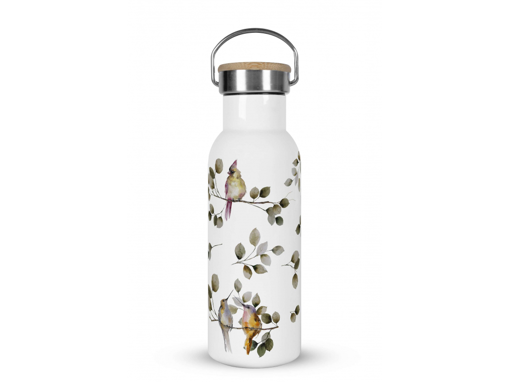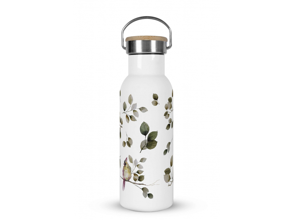 Nerezová termoska s bambusovým víčkem je stylovým doplňkem, kterým můžete nahradit neekologickou plastovou lahev na pití. Šroubovací uzávěr s praktickým sklopným nerezovým poutkem zajišťuje skvělé izolační schopnosti. Termoska je skvělou volbou na kávu, čaj, ale i další horké a studené nápoje. Gumové těsnění zaručí, že se vám váš oblíbený nápoj nevylije. Bambusové víčko zdobí gravírované logo.