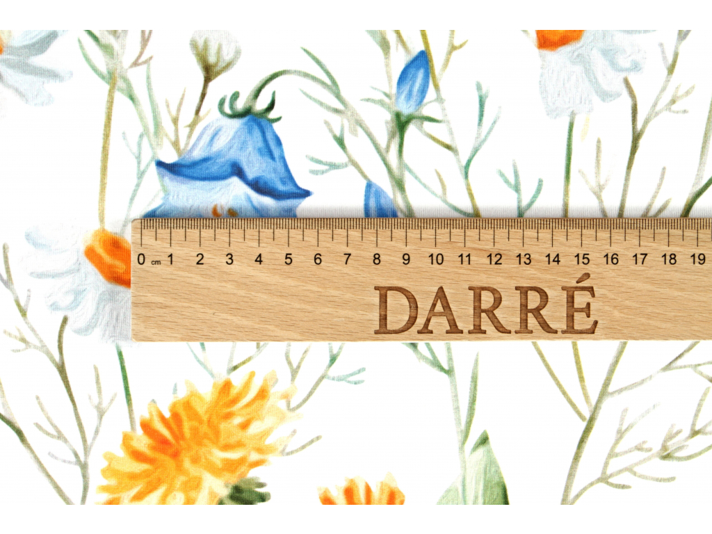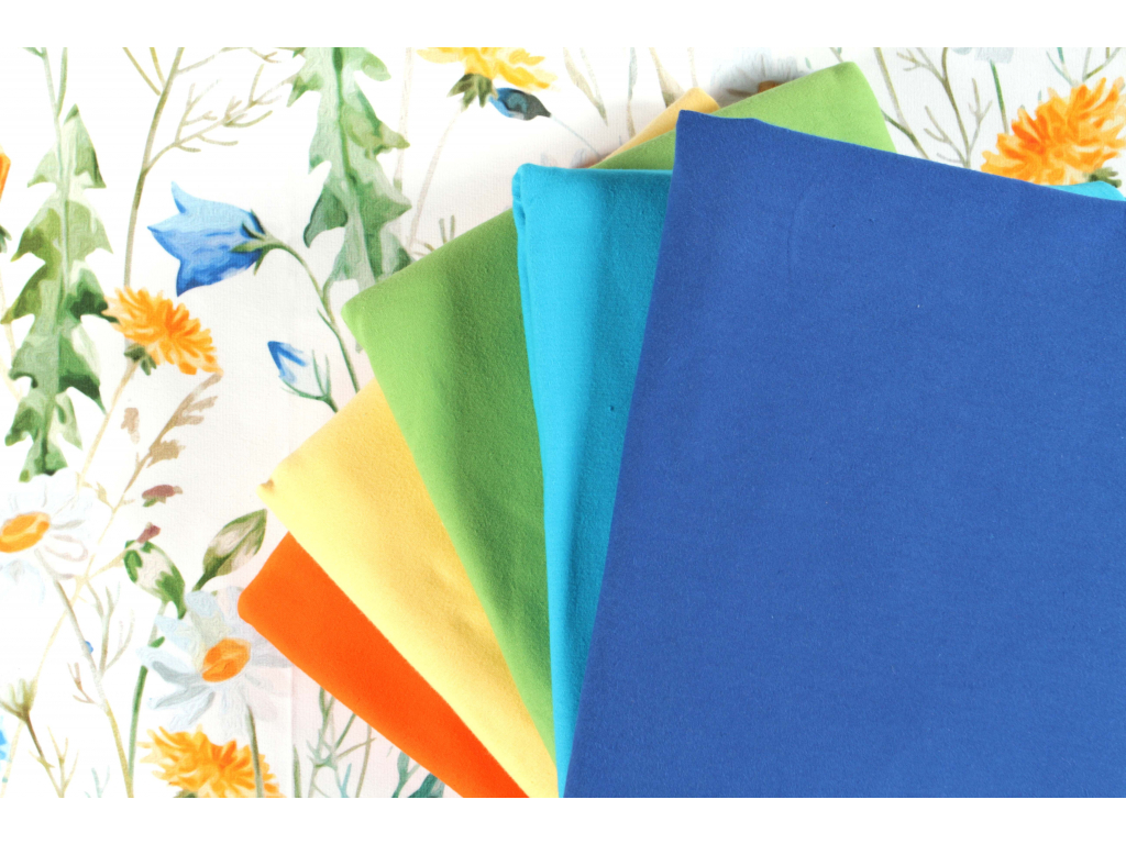 Bavlněný úplet se složením 94% bavlny a 6% elastanu o gramáži 200 g/m2 je velmi jemný a příjemný na dotek. Šíře metráže je 155 cm. Tištěno kvalitním a stálobarevným digitálním tiskem v EU.