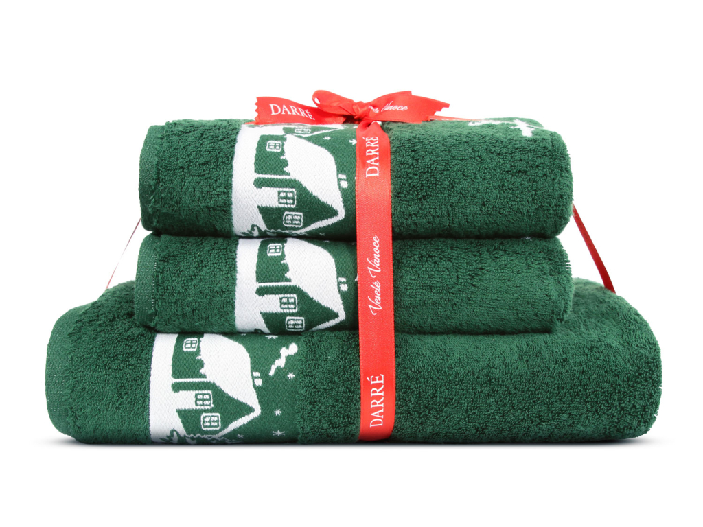 Výhodná sada ručníků a osušky Vánoční chaloupky - zelená