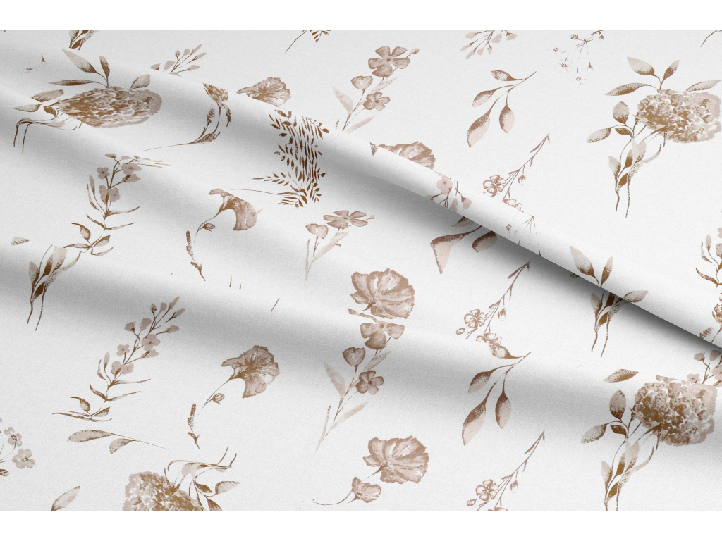 Hustě tkané bavlněné plátno ze 100% bavlny o gramáži 125g/m2. Šířka látky je 160 cm. Jemnost příze 20 TEX. Látka obsahuje kvalitní a stálobarevný pigmentový potisk. Barva smetanová s nádechem do meruňkové.