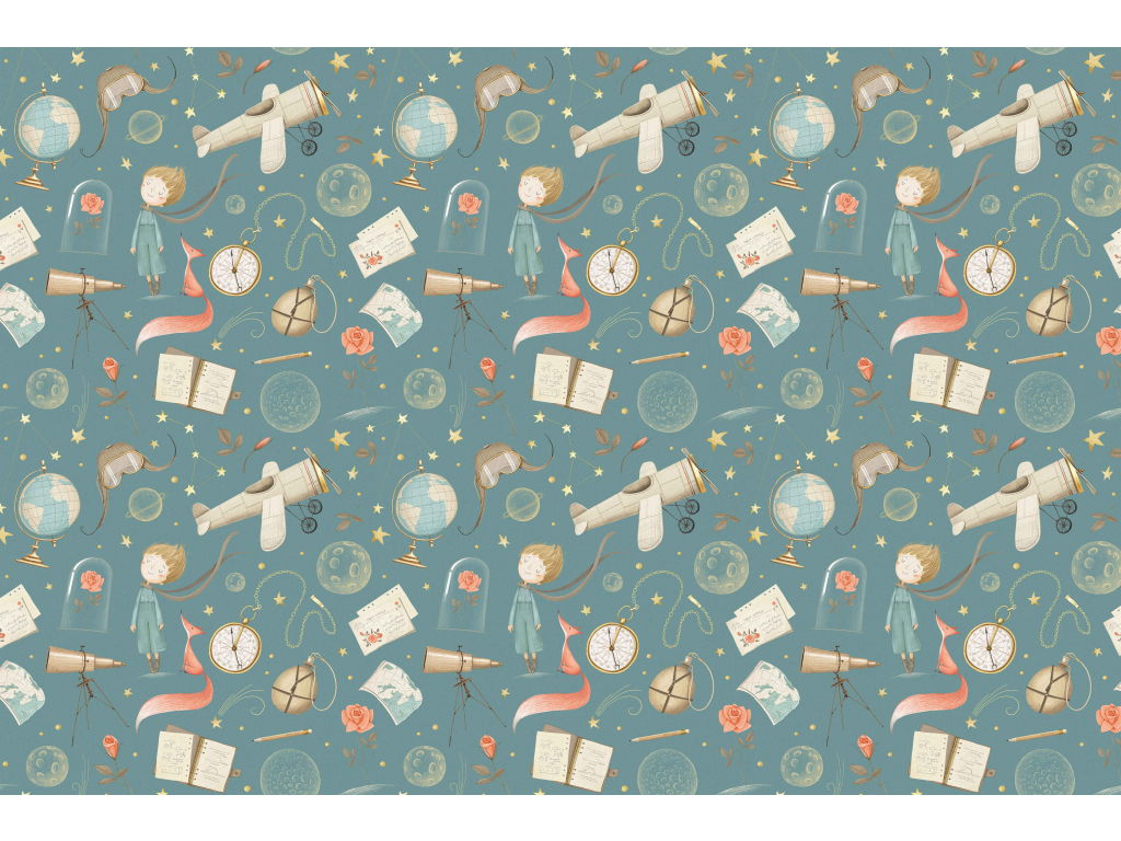 Zbytek bavlněné látky PERKÁL - Malý princ zelená 60 x 160 cm