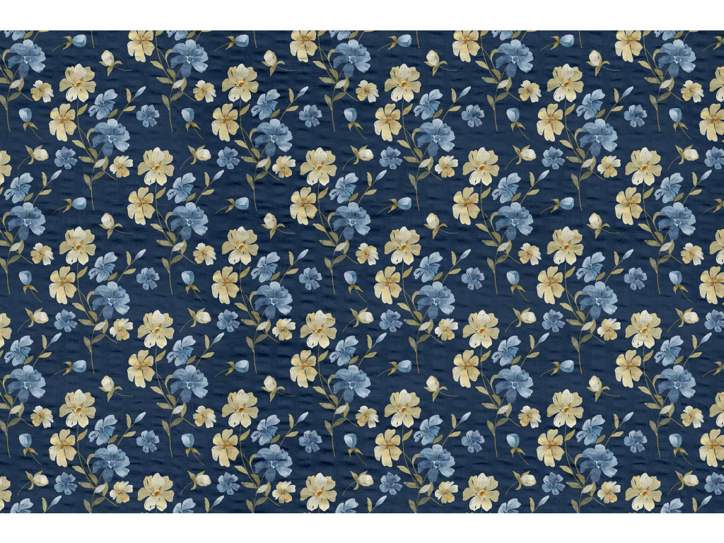 Zbytek krepové látky perkál - Bloom modré - 100 x 160 cm