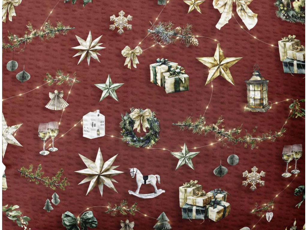 Zbytek krepové látky PERKÁL - Kouzlo Vánoc - jasně červené - 55x160 cm