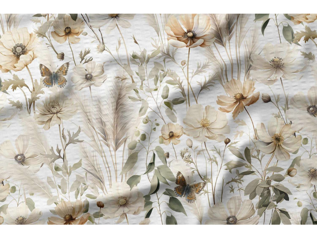 Zbytek krepové látky PERKÁL Květinová zahrada světlá - 45 x 160 cm