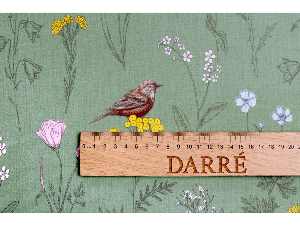 Zbytek krepové látky Ptáčci v kvítí - tm. zelená 55 x 160 cm