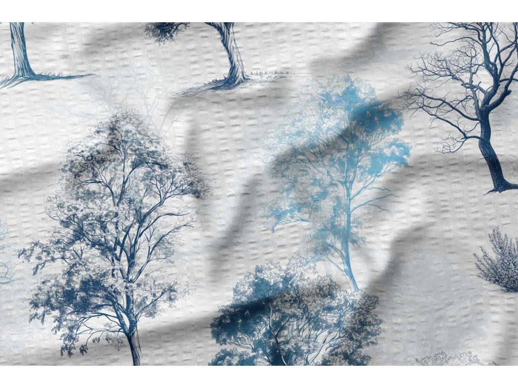 Zbytek krepové látky Stíny stromů - modrá 55 x 150 cm