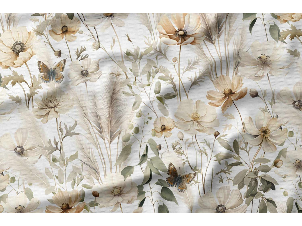 Zbytek perkálové krepové látky Květinová zahrada - bílá - 50x160 cm