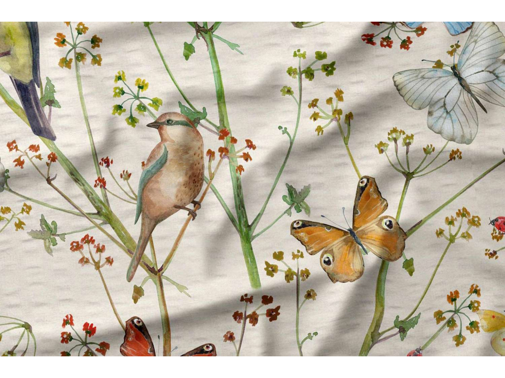 Zbytek perkálové krepové látky - Ptáčci s motýli - 55x160